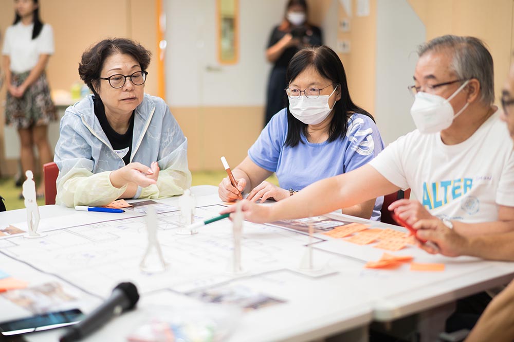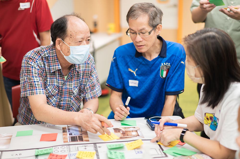 研創專員學習設計思維的五個階段:同理心、定義、構思、原型和測試。透過輕鬆有趣的小組練習,研創專員從用家的角度出發,提出實用的創新方案,為「樂活安居生活實驗室」模擬家居的裝潢設計佈局提供意見。