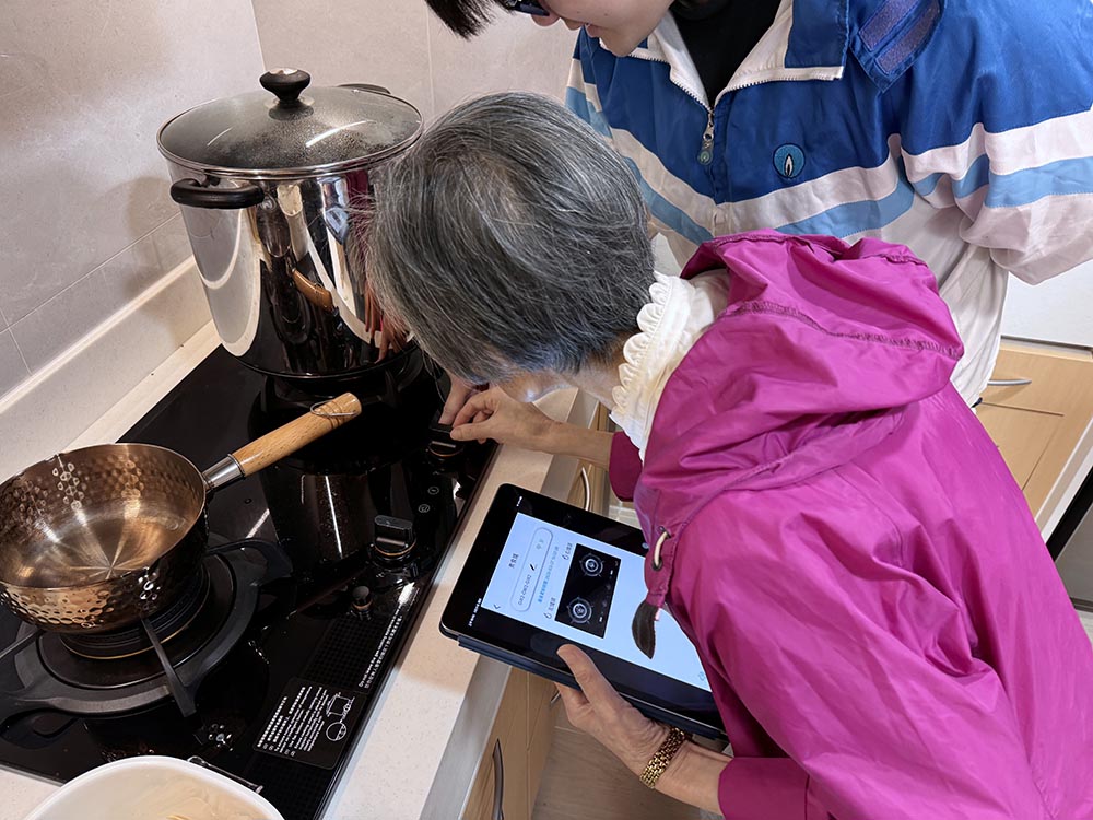 我們邀請長者在模擬家居廚房中烹調家常菜餚,實測創新的智能爐具,包括重點測試關火提醒、煙灶聯動等安全功能,以及試用應用程式操控與監測相關設備的介面,並向合作夥伴提供改良建議,提升長者用家的使用體驗。