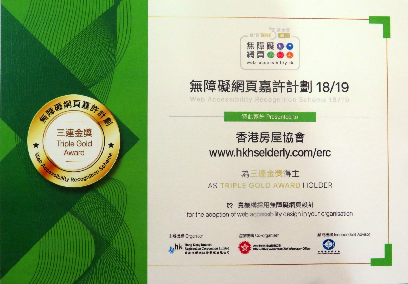 ERC website received the “Triple Gold Award” in the Web Accessibility Recognition Scheme 2018, which adopts web accessibility design to facilitate easy access to online information. The Scheme is co-organized by Hong Kong Internet Registration Corporation Limited and OGCIO.