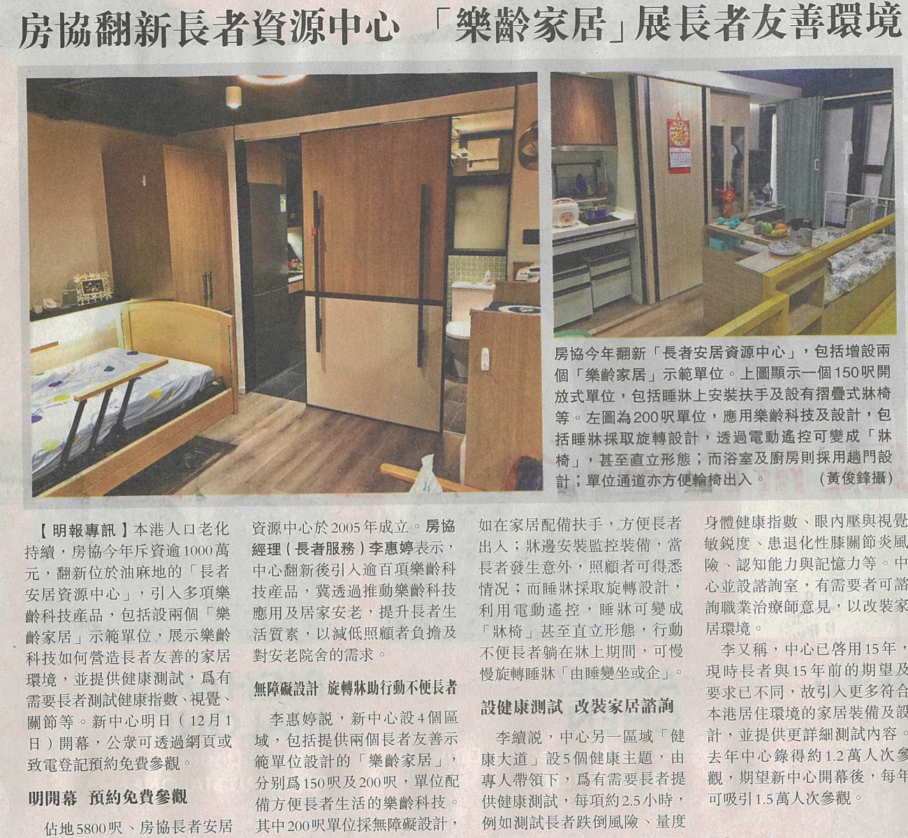 房協翻新長者資源中心 「樂齡家居」展長者友善環境