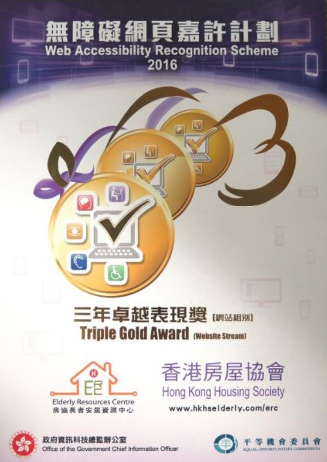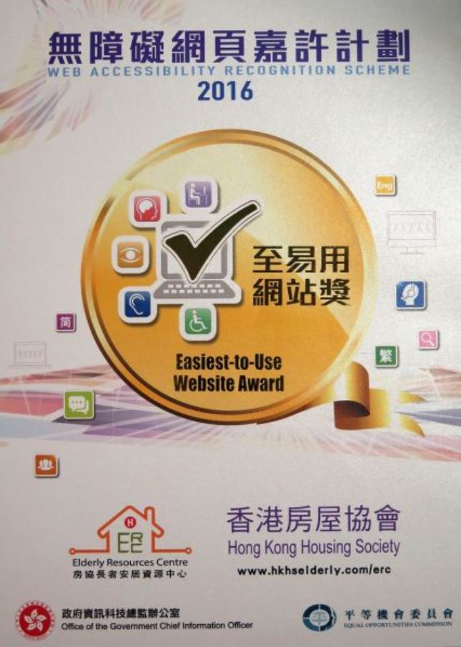 2016-04-01 连夺「三年卓越表现奖」及「至易用网站奖」,并成为十大「最喜爱网站」 收藏 中心网站采用了无障碍设计,今年在政府主办的无障碍网页嘉许计划中,连夺「三年卓越表现奖」及「至易用网站奖」,并成为十大「最喜爱网站」。计划由政府资讯科技总监办公室和平等机会委员会合办。