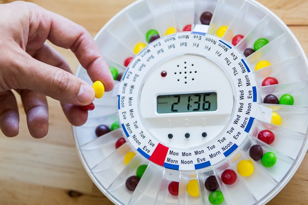 而智能药盒最实用之处,是备有上锁功能。如果服药时间未到,长者无法自行打开药盒取出药丸,有效防止他们过量服药。