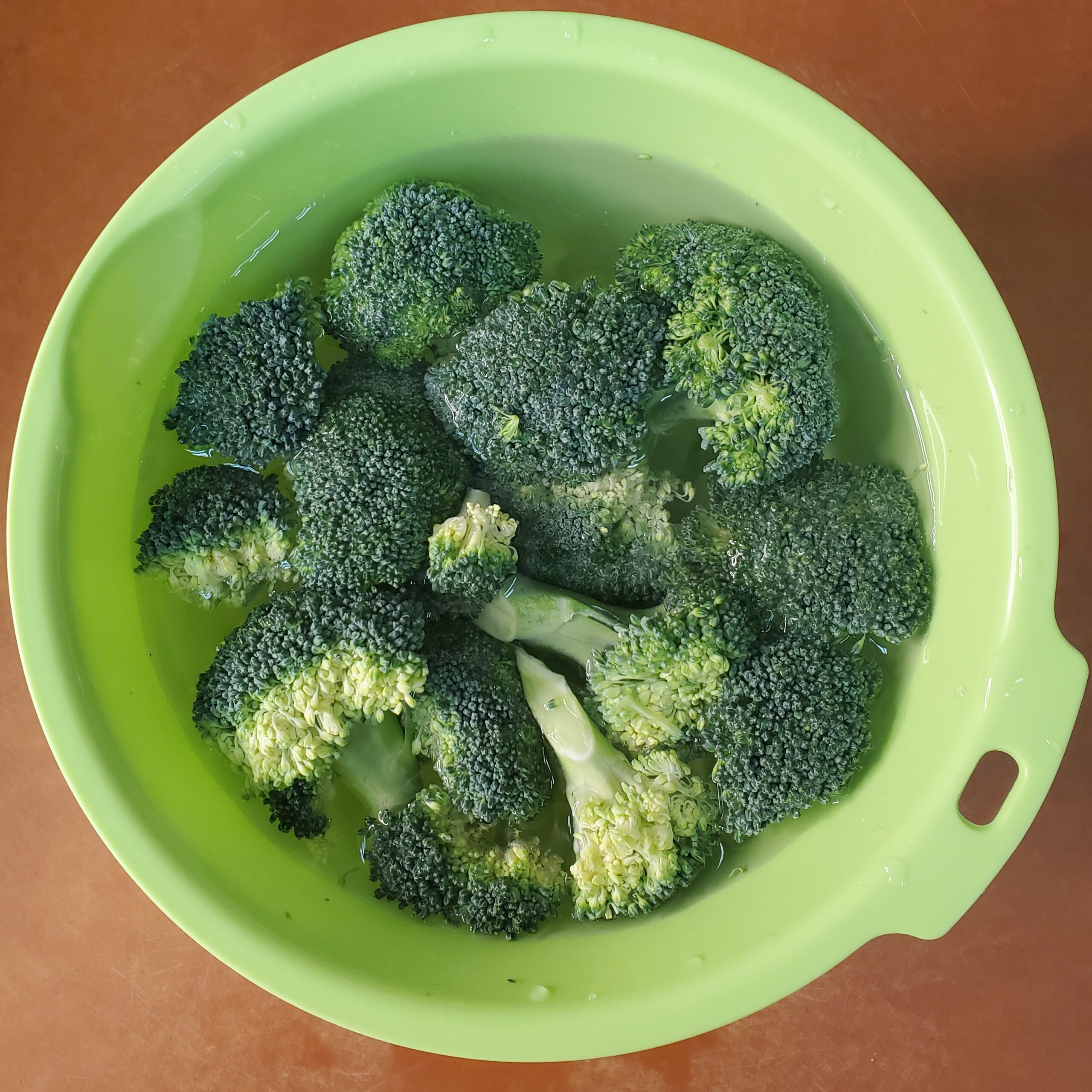 - 西蘭花容易藏有幼蟲,故切小棵沖洗後需要用鹽水浸,讓幼蟲浮出。 浸完鹽水的西蘭花需要再洗淨,去除鹽份與鹹味。