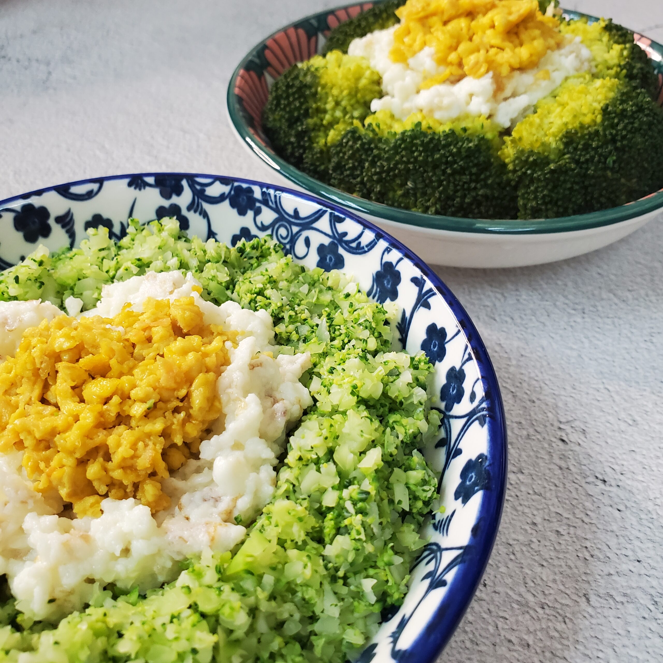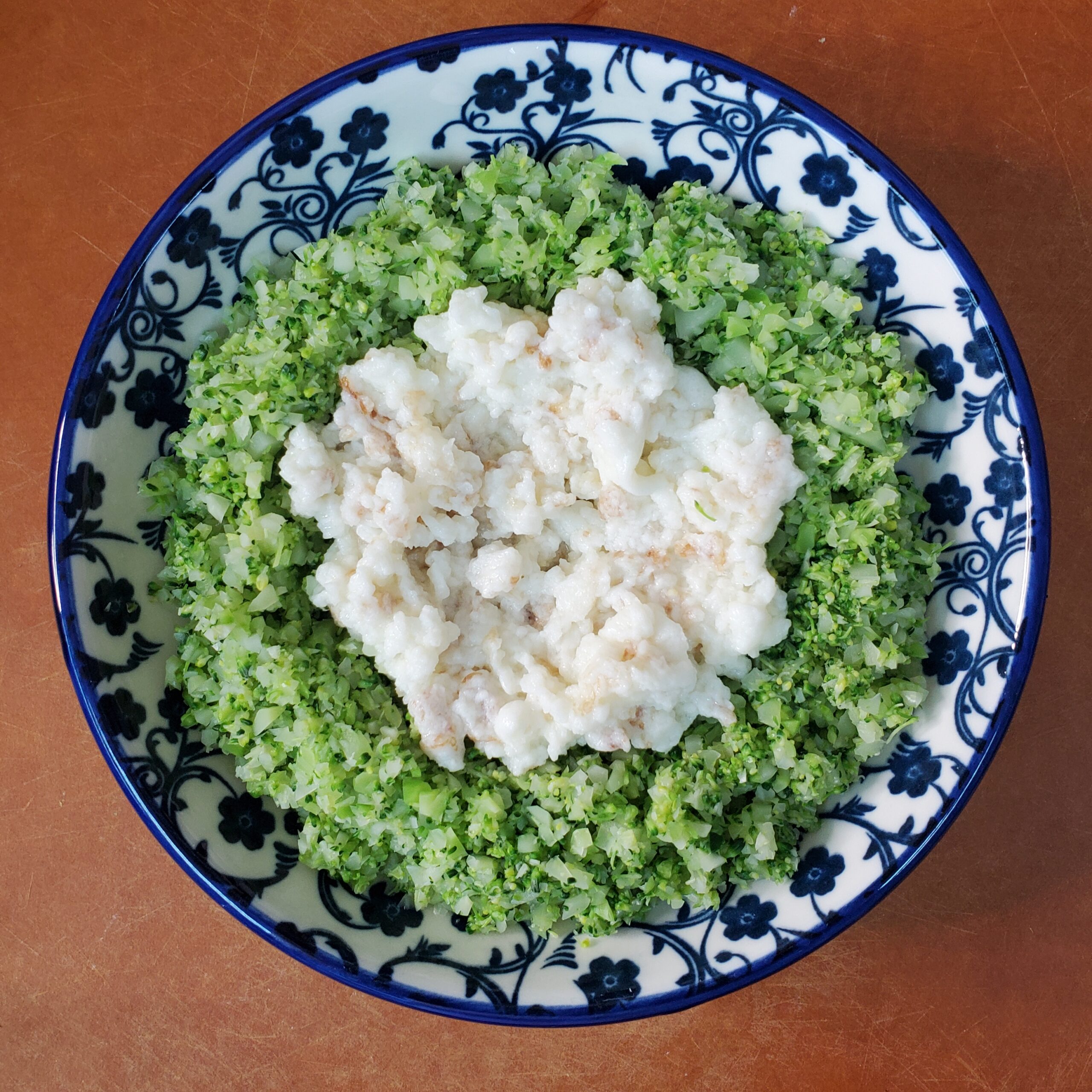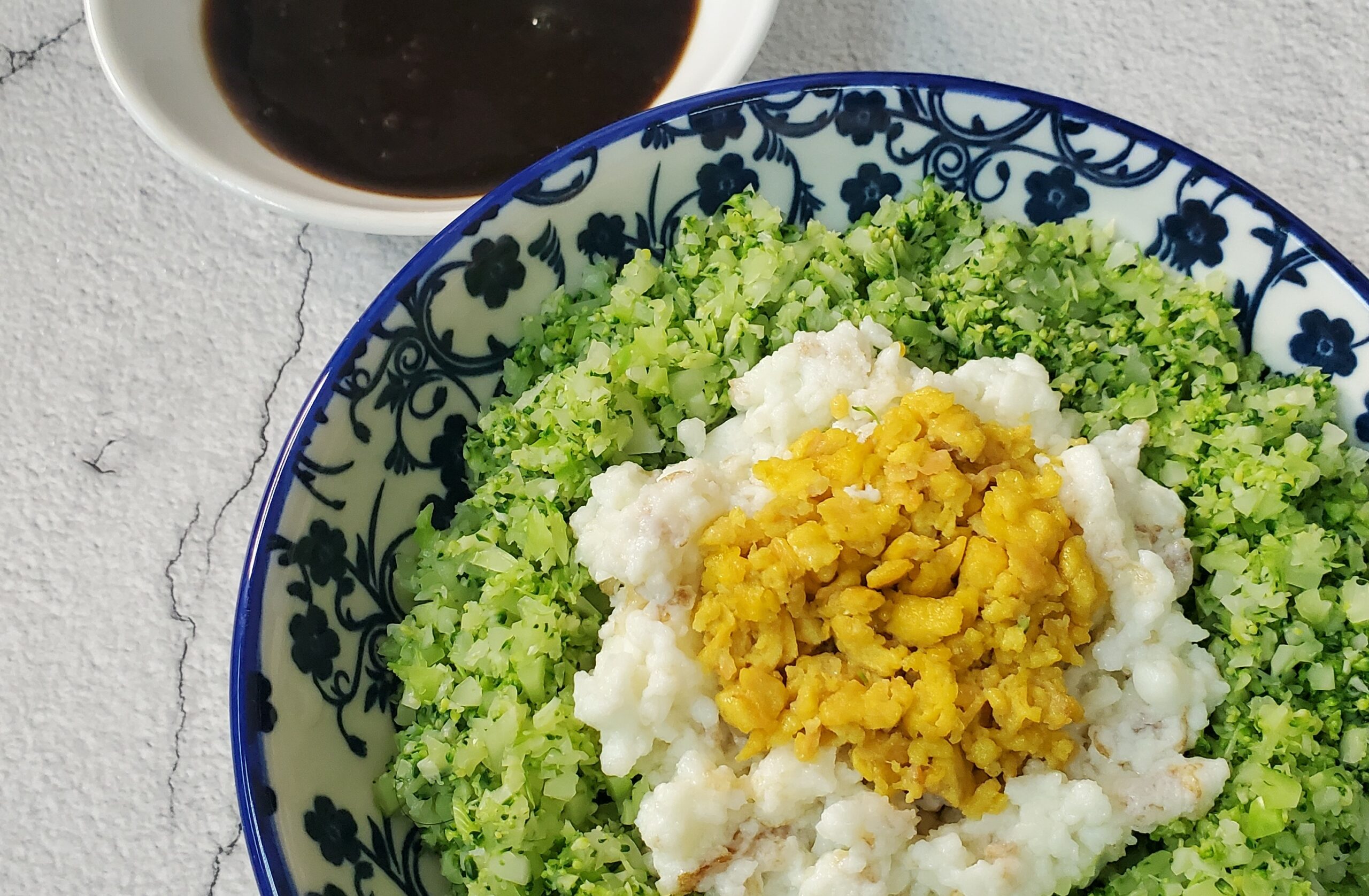 - 煲水,水滾加半茶匙鹽、糖和西蘭花碎,煮2-3分鐘,盛起瀝乾水份,在碟上排成圓圈。