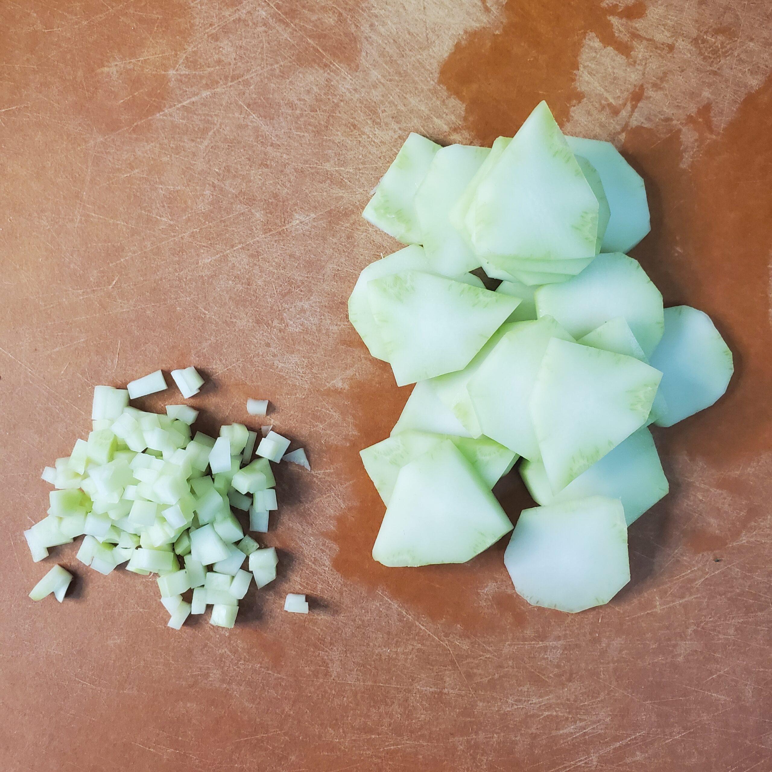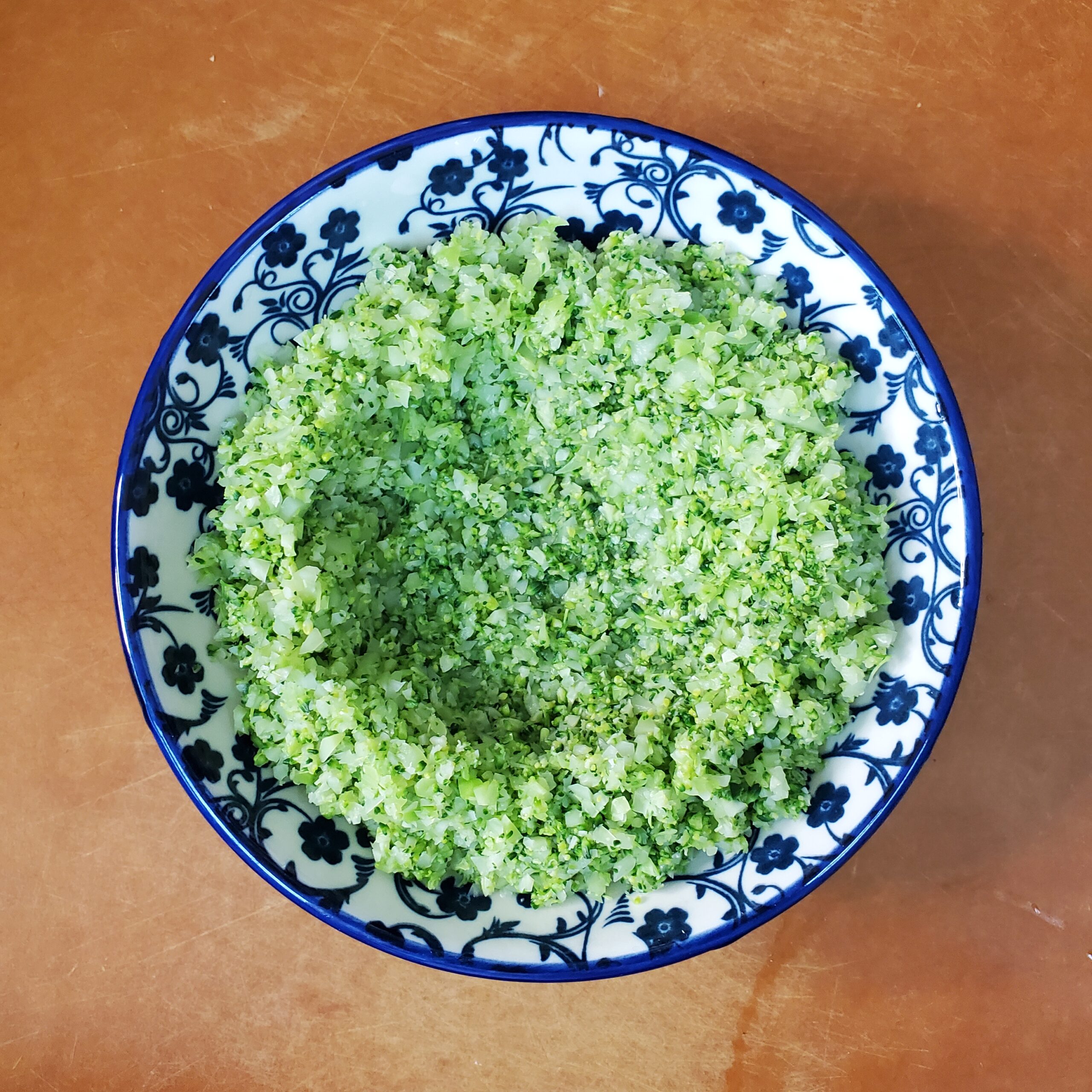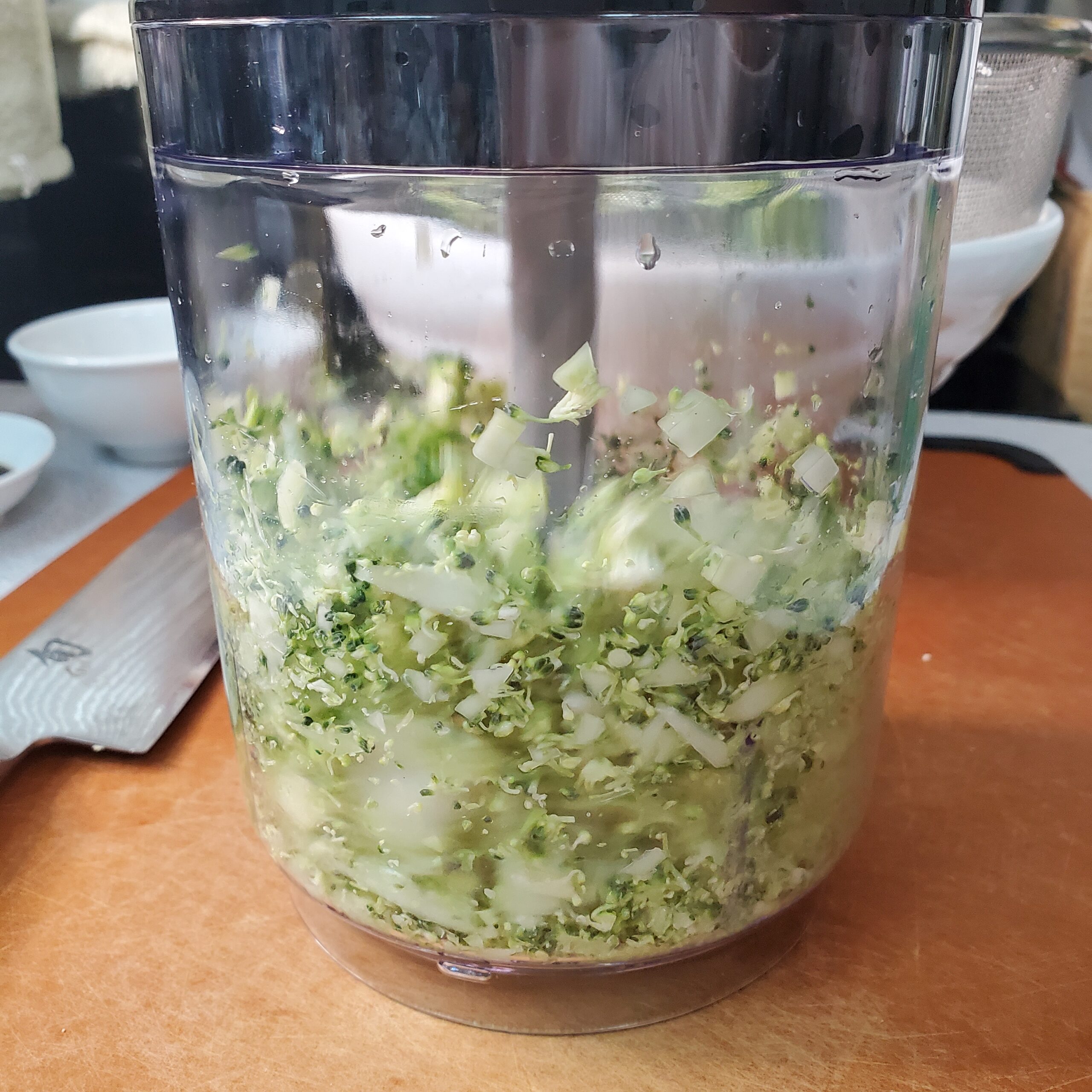 - 西蘭花根莖部份比較硬身,要先將其去皮才可攪碎或剁碎。