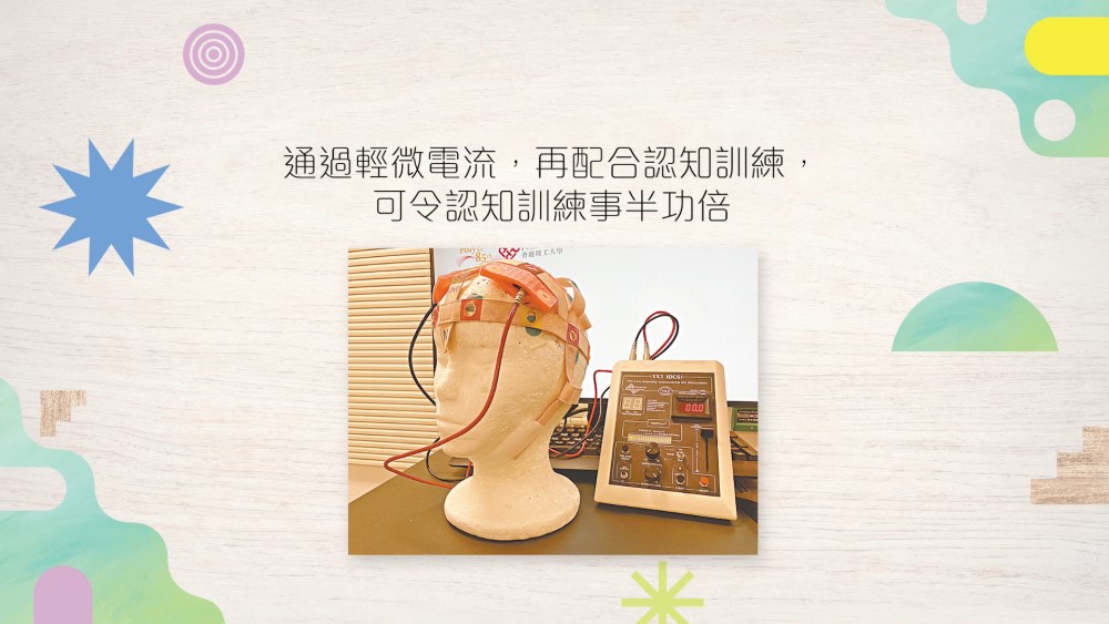 最新研究發現,若果在進行認知訓練之同時,以很輕微的「直流電」去刺激大腦,可令專注力提高,讓認知訓練事半功倍。大家不用擔心安全問題,那些直流電僅僅來自電芯而已,不會構成傷害的。過程中,治療師會在接受訓練人士的頭頂位置接駁一部機器,藉此以微電流刺激大腦,強化認知訓練的成效。