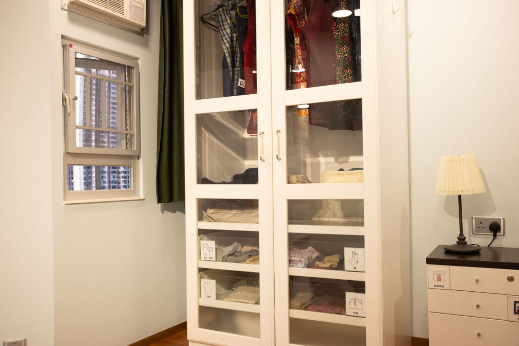 就以睡房为例,这是一个重要的活动空间,长者不单会在这里休息,他们很多的日常用品,例如衣物,甚至贵重的物品都会存放在里。但很多典型的事例,是患者存放物件后,很快就忘记,结果常常引发很多不愉快的问题。因此,一个有富于简洁又系统性的收纳方法,对他们来说会极为重要和便利。