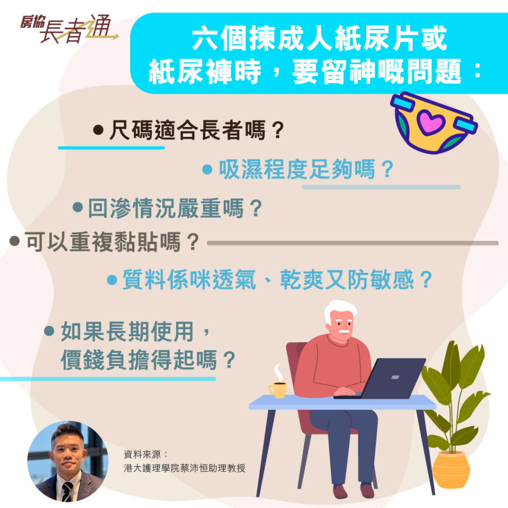 選購成人紙尿片六大重點 港大護理學院蔡沛恒博士逐點講
