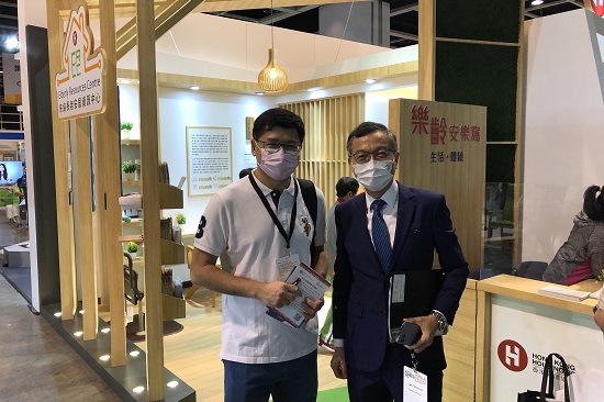 3. 醫院管理局行政總裁高拔陞醫生 (左) 和安老事務委員會主席林正財醫生到訪我們攤位。