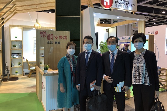 5. 房協行政總裁兼執行總幹事陳欽勉先生 (左二) 、總監(物業管理)潘源舫先生 (左三) 及企業傳訊總監梁綺蓮 (左一) 為我們打打氣!