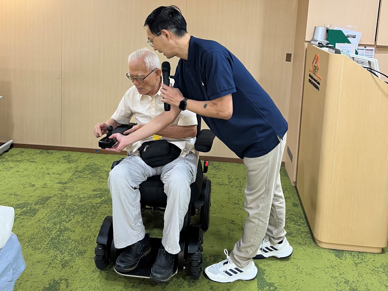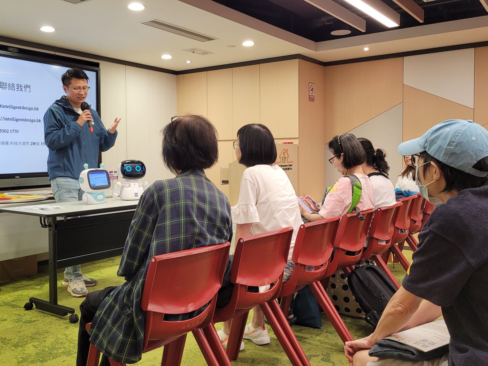 2024-07-05 樂齡科技體驗日 - 智能機械新世代 收藏 1. 參加者留心地聆聽研發公司的產品介紹。2. 參加者即場試用了最新的樂齡科技產品。3. 用家和研發公司可以直接交流,有助樂齡科技發展。4. 參加者體驗了中心的身體功能測試系統,測試體脂率和內臟脂肪指數。5. 來張大合照!下次見!